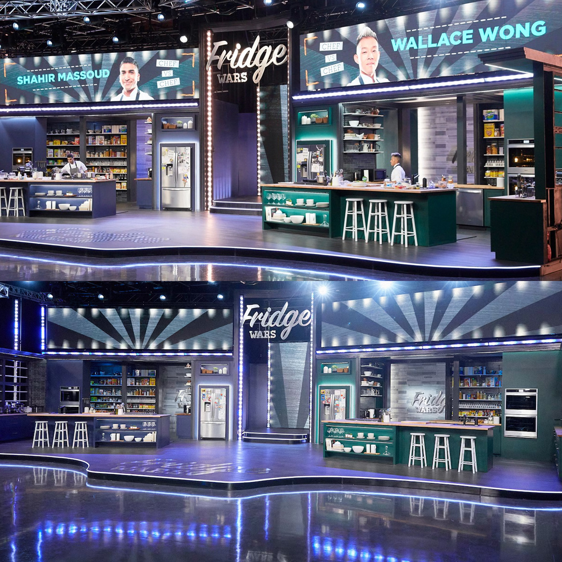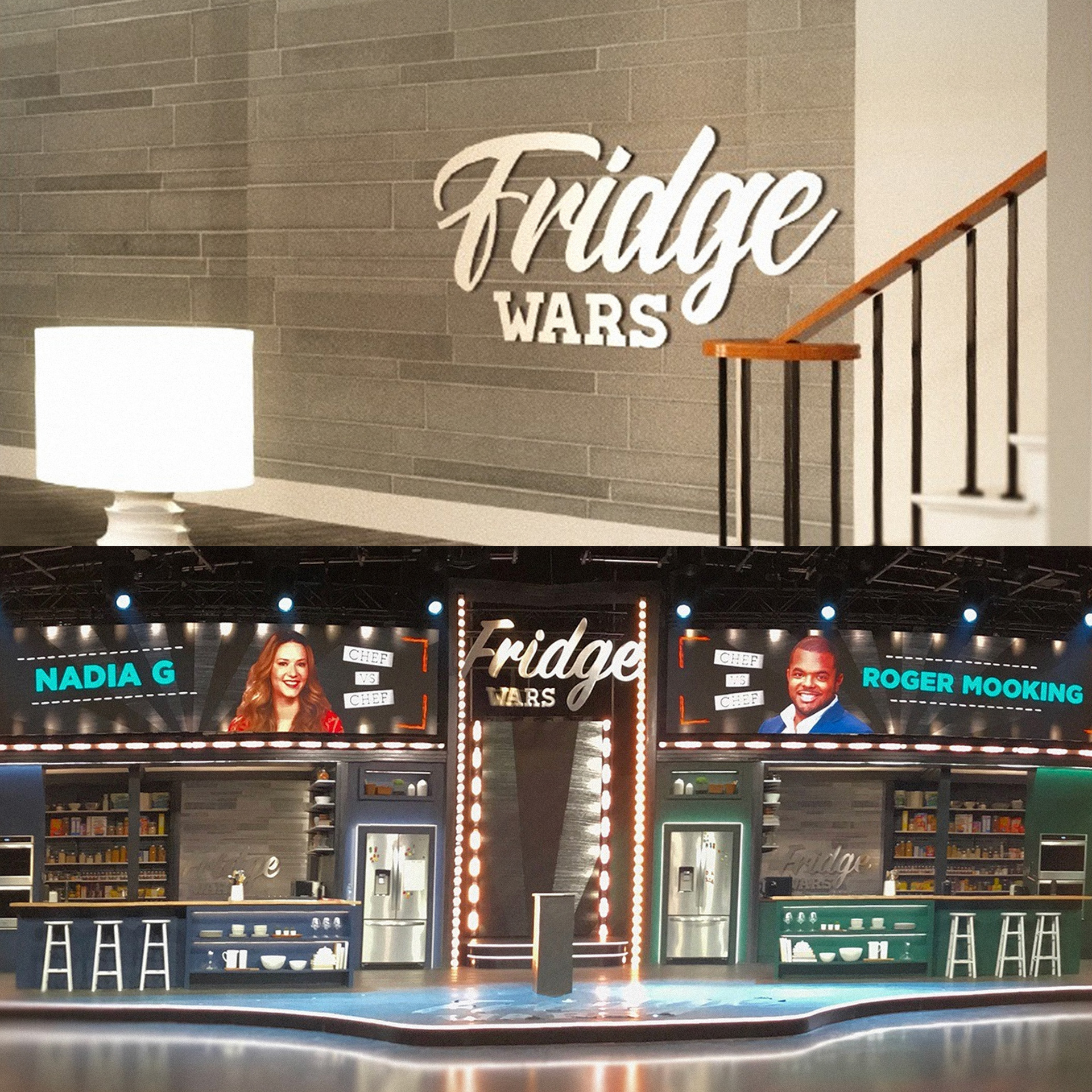 Logo and set screen graphics design for CBC Gem's "Fridge Wars".